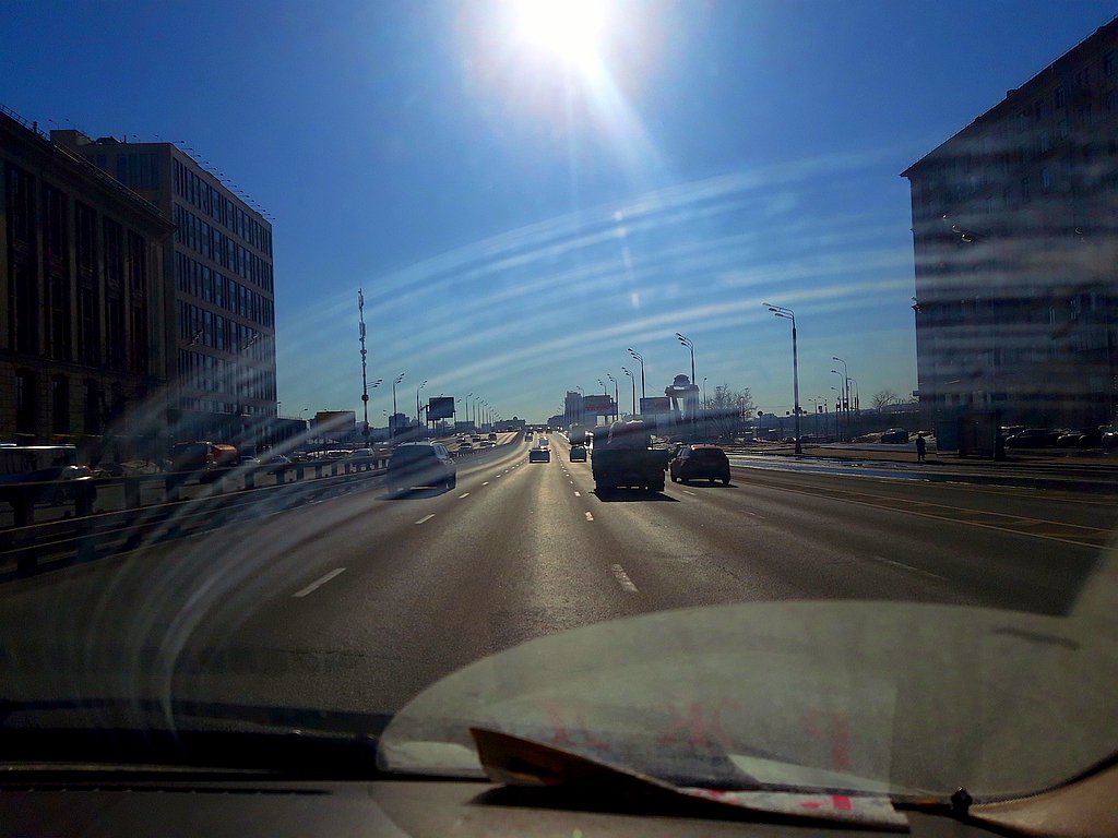 Навигатор проложил дорогу из севера Московской области на юг через центр столицы. Благо я тут многое знаю и помню ведь навигатор врет теперь безбожно. Шоссе растекается грязной соленой жижей с отбойников и обочин под лучами солнца. Стекло скрипит и не отмывается щетками под струями из омывателя.
