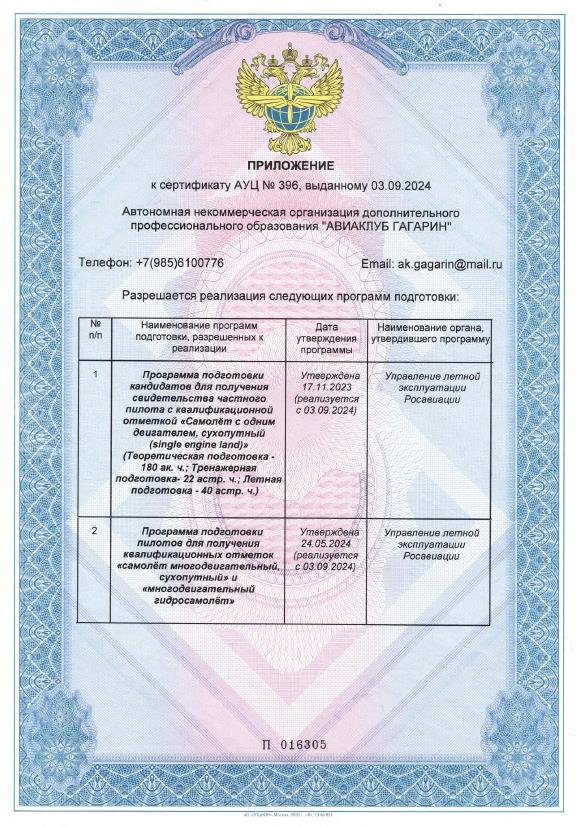 3. Утверждены программы подготовки кандидатов для получения свидетельства частного пилота с квалификационной отметкой "Самолет с одним двигателем, сухопутный (single engine land)". А так же программа подготовки на многодвигательный сухопутный и многодвигательный гидросамолет.