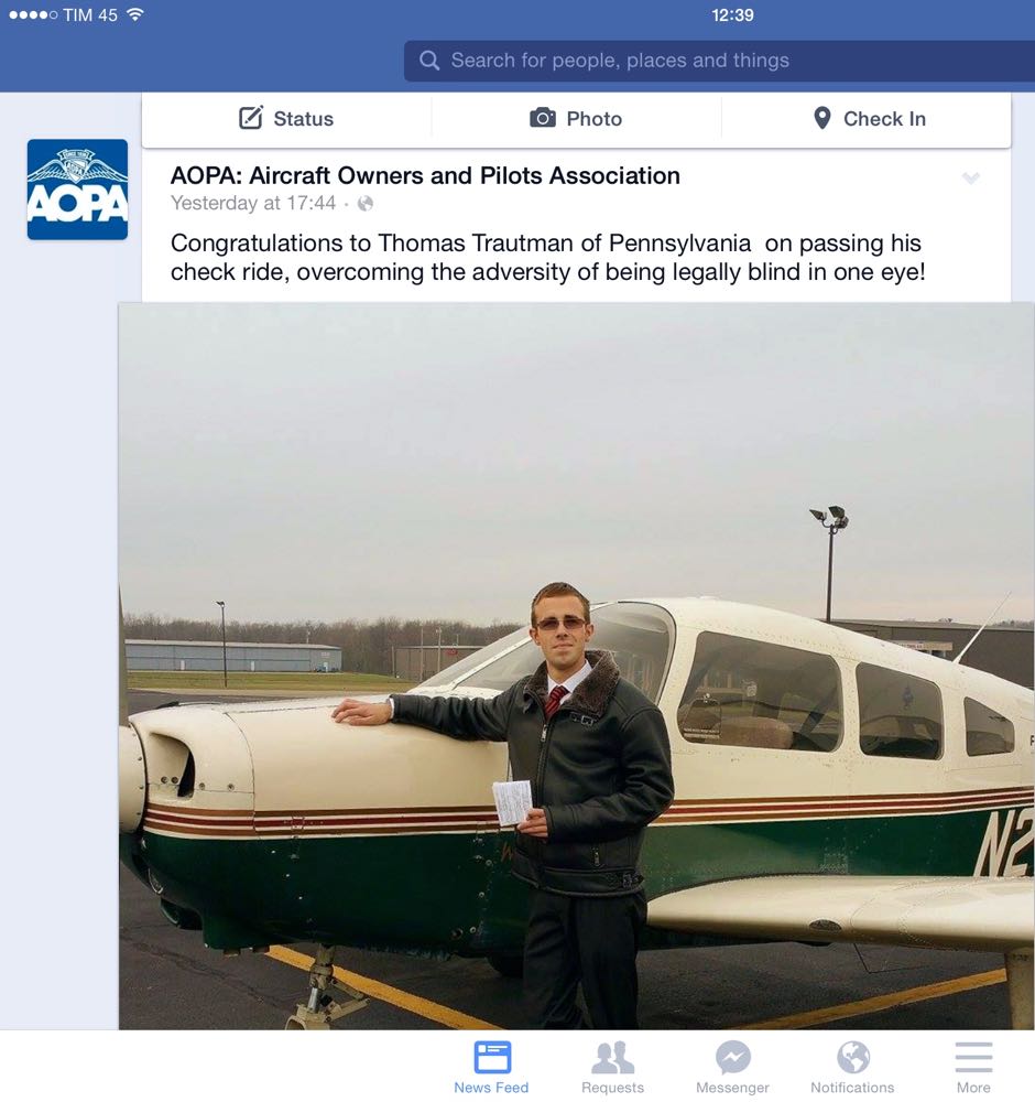 ну "одноглазые" пилоты это не особая новость ... они и пассажиров неплохо "возят" ... вот например "одноглазый" капитан успешно посадил 737-й после того как отказали оба двигателя - http://en.wikipedia.org/wiki/TACA_Flight_110 ... :wink: