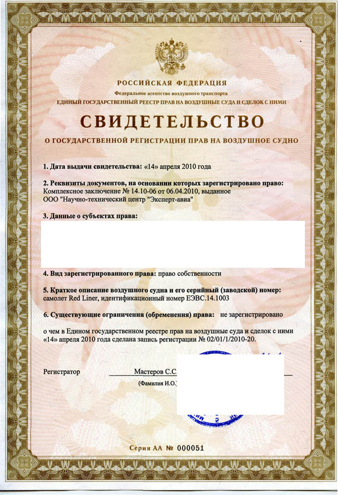 4. Самолёт был зарегистрирован как ВЖИК на основании акта о самостоятельной постройки.