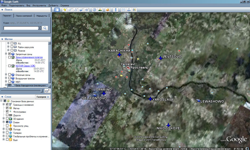4. Координаты Карачихи в "неофициальной базе аэродромов" от 502 (та, что в Гугл Планета Земля), а так же в базе для GPS-навигаторов от Брифинг+ (Constantin) не правильные. Они взяты из сборника по площадкам от Авиакоминфо, а там тоже кривая информация. Правильные координаты вертолетной площадки: N57°38.83 E39°45.93. Правильная КТА аэродома: N57°39.03 E39°45.62. А точка, данная в базах и сборниках находится вне территории аэродрома, за железнодорожной веткой, в промзоне рядом с кладбищем.