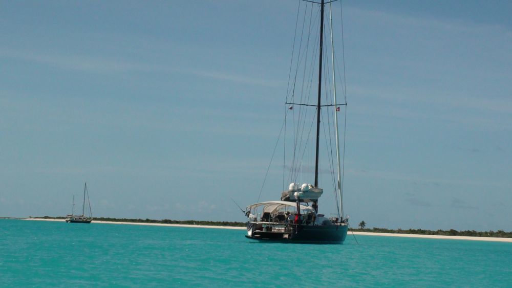 Наша лодка на якорной стоянке возле острова Барбуда.