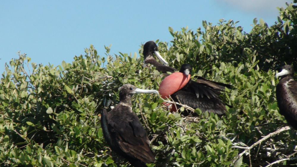 Колония фрегатов (птица такая). В полете очень похожи на птеродактилей