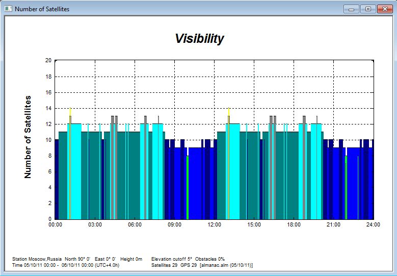 1. GPS лежит на окне, внешняя антенна на козырьке за окном. Т.е. видно чуть меньше пол-неба - часть заслонена домами. GPS ловит достаточно много спутников, постоянно показывает "точность" 3 метра. Запись трэка раз в 5 секунд. Записывал в течении 4-х часов.