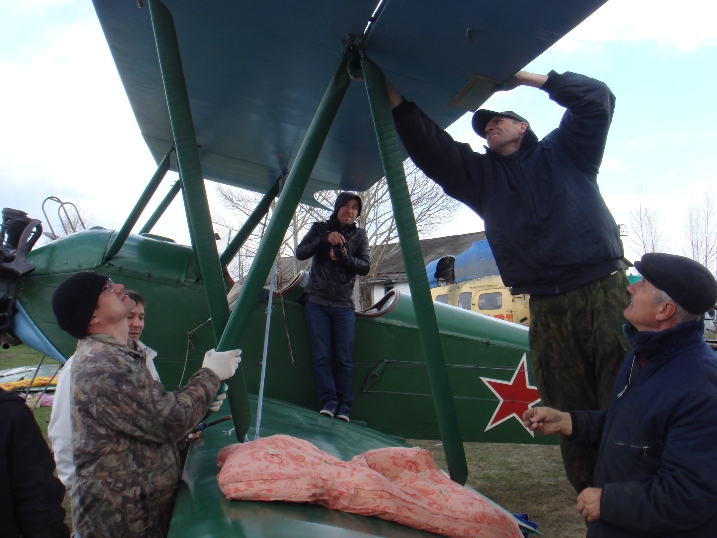 бывшие пилоты вертолетов, самолетов, инженеры, техники, все люди профессионалы с большой буквы, Римма (в прошлом КВС АН-2) супруга Николая (один из рестораторов) сшила все оперение на ПО-2, самолет с технической точки зрения восстановлен идеально!!