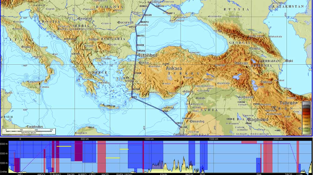 Посадки в Констанце, Измире, Родосе, Пафосе и Хайфе.