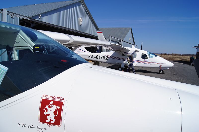 Вылетаем с руководителем Красноярского лесопожарного центра Дмитрием Селиным (кстати отучившимся на Р-92 в Челябинске и самомтоятельно с удовольствием летающим в качестве КВС на ECHO SUPER) на первую встречу с первым прибывшим в Сибирь "Твином".
