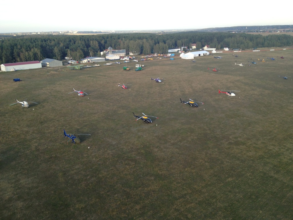 Сейчас идет подготовка спортсменов, последние тренировки и т.п. На площадке 31 вертолет самых разных типов, от R22 и Cabri до Ми-2 и AS-350, а также один Bo-105 от RedBull.