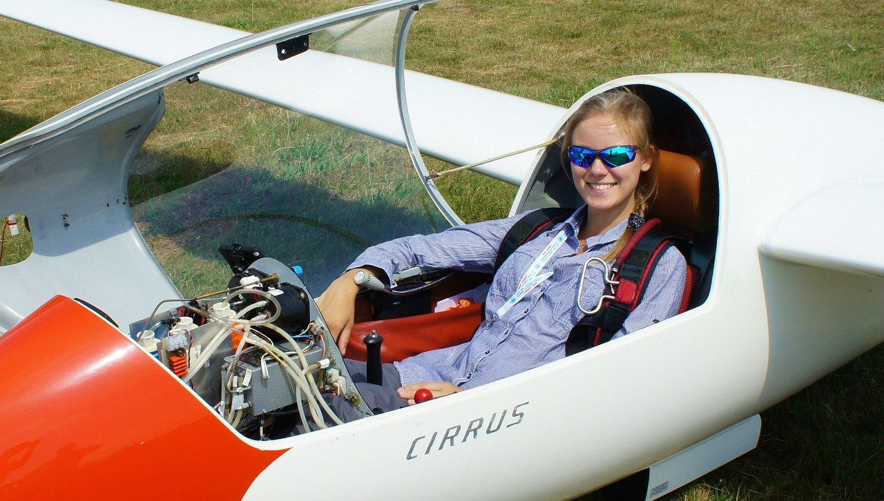 На фото Лена позирует в своём планере Cirrus с соревновательным номером 3 на киле.
