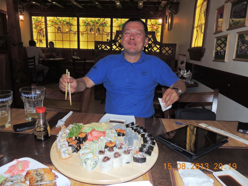 Встречал нас Владимир Городчиков, старый знакомый.Посадил нас в машину и повез ужинать.