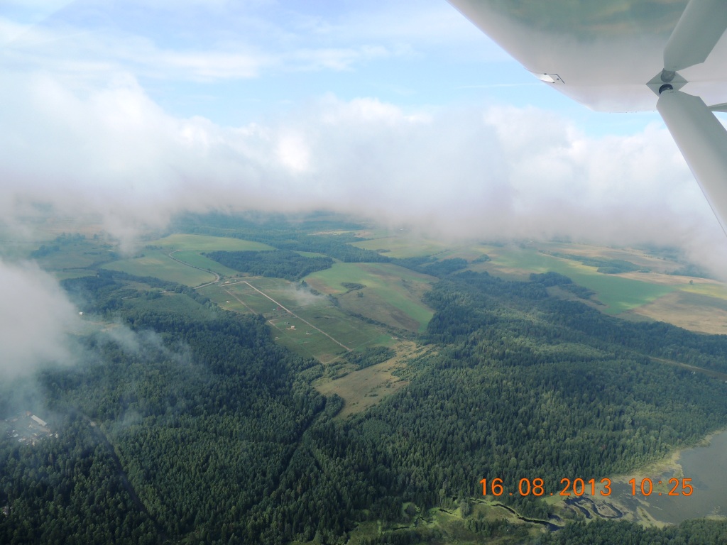 В десять часов,по хитрой траектории, оторвали колеса и сквозь дырявые облака забрались на тысячу .