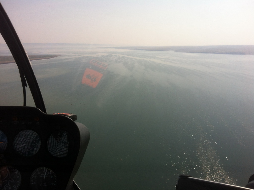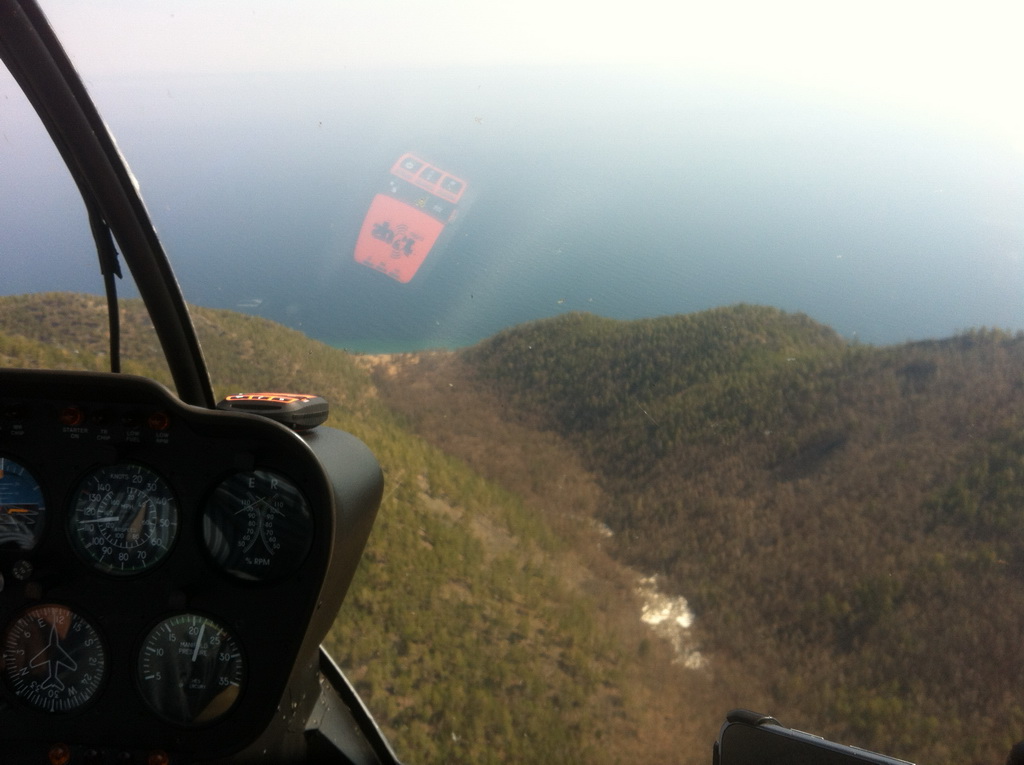 Подъем был намечен на 04:20 местного, в 4:45 нас ждало такси на аэродром. От ощущения, что я совсем не выспался не помог даже душ  Это был второй день, когда я спал по 4 часа максимум. Приехав на аэродром мы подготовили и проверили вертолет, еще минут 20 после этого подождали начала рассвета и в 05:55 местного вылетели. На борту все так же были 2 толстяка, 120 литров бензина, доп аккум и немного шмотья. Отрывались тяжело.