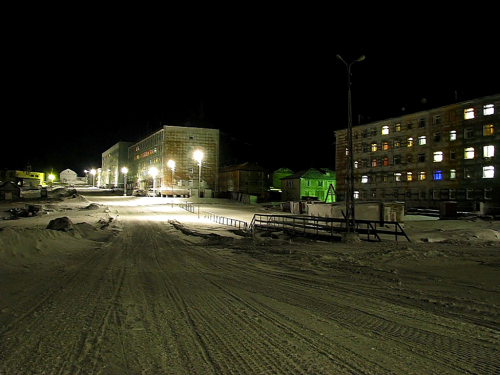 Сейчас предновогодний Диксон во власти полярной ночи, частенько метели с ветром до 25 м/сек и морозом. В это время отменяет все свои занятия действующая средняя школа. Проливы встали под крепкий лед.