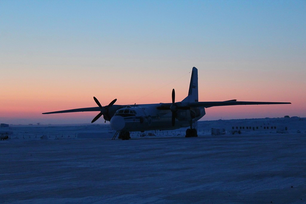 Единственной оперативной связью с материком, сейчас является борт, прилетающий так же один раз в неделю из Норильска. На фоне самолета заметно, как выглядит сейчас световой день на моей Родине